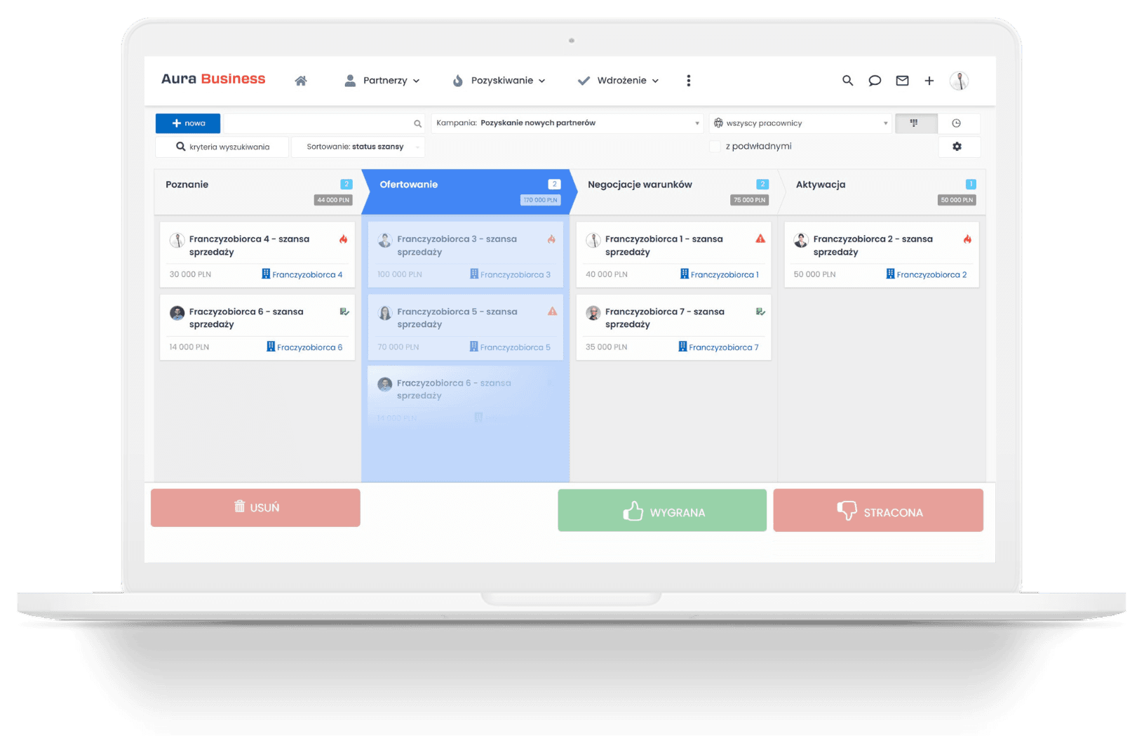 Rozwiązanie informatyczne Aura Business dla sieci franczyzowej to kompleksowe narzędzie zaprojektowane z myślą o wsparciu zarządzania relacjami z partnerami, optymalizacji procesów operacyjnych oraz podniesieniu efektywności współpracy na każdym etapie działania. System wspiera zarówno centralę sieci franczyzowej, jak i jej partnerów, zapewniając przejrzystość relacji i dostęp do kluczowych informacji w czasie rzeczywistym. Dzięki temu narzędziu centrala może skupić się na budowaniu wartości i rozwoju marki, a partnerzy otrzymują wsparcie, które przekłada się na ich sukces w ramach sieci.